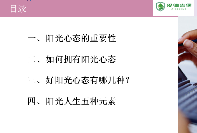在物欲橫流、人心浮躁的當(dāng)下;年輕人受挫一次,可加深對(duì)生活理解;失誤一次,將上升對(duì)人生領(lǐng)悟;坎坷一回,將增進(jìn)對(duì)人生認(rèn)識(shí);磨難一次,將覺悟?qū)Τ晒φ嬷B體會(huì)。陽光心態(tài)是一種積極、寬容、感恩、樂觀和自信的心智模式;具有陽光心態(tài)的人做事負(fù)責(zé)、樂觀開朗、自信堅(jiān)強(qiáng)、懂得感恩、關(guān)愛他人、善于交往。21世紀(jì)新生代弄潮兒們?cè)诶щy和挫折面前,該如何客觀看待世界,積極健康擁抱工作和生活,積累正能量,快樂成長呢?