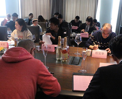 四、《紅酒知識(shí)及銷(xiāo)售技巧》由合肥愛(ài)德森堡文化發(fā)展公司的銷(xiāo)售經(jīng)理尹朝元講解,合肥愛(ài)德森堡文化發(fā)展公司是安徽愛(ài)德森堡控股有限公司旗下的全資子公司,是一家專(zhuān)業(yè)的進(jìn)口優(yōu)質(zhì)葡萄酒代理商和品牌運(yùn)營(yíng)商。這堂課首先帶我們了解葡萄酒,后細(xì)教我們?cè)鯓悠穱L葡萄酒,葡萄酒與食物的搭配,怎樣挑選葡萄酒,初步認(rèn)識(shí)法國(guó)紅酒。通過(guò)本節(jié)課的學(xué)習(xí)讓新員工對(duì)葡萄酒的歷史、制作、儲(chǔ)存、品味等有了一個(gè)大概的了解,勾起了培訓(xùn)現(xiàn)場(chǎng)的全員對(duì)葡萄酒文化產(chǎn)生了濃厚的興趣。