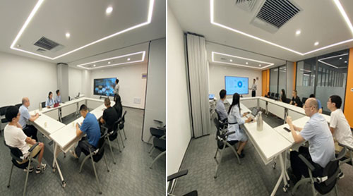 箭舸物聯(lián)總經(jīng)理及總助等陪同孫教授與袁教授參觀了辦公環(huán)境,并對集團(tuán)公司企業(yè)發(fā)展歷程、產(chǎn)業(yè)類型、業(yè)務(wù)分布向兩位教授進(jìn)行詳細(xì)介紹,著重強(qiáng)調(diào)了集團(tuán)公司旗下各子公司主營業(yè)務(wù)及企業(yè)社會影響力和公信力。隨后,箭舸物聯(lián)總經(jīng)理深入淺出的講述了我們積極探索“物聯(lián)網(wǎng)+”,立足在道路運(yùn)輸行業(yè)的實(shí)際應(yīng)用,打造以服務(wù)為中心,產(chǎn)業(yè)一體化智能化的貨運(yùn)網(wǎng)管理模式。兩位教授依托對箭舸物聯(lián)有了深入了解后,現(xiàn)場對箭舸物聯(lián)網(wǎng)絡(luò)貨運(yùn)平臺的未來發(fā)展給予研討式規(guī)劃性的指導(dǎo)意見,認(rèn)為箭舸物聯(lián)網(wǎng)絡(luò)貨運(yùn)平臺既要保障上游貨源足高效能,更要保障下游車隊(duì)駕駛員權(quán)益;在當(dāng)下更要緊緊抓住發(fā)展契機(jī),率先探索出線下承運(yùn),實(shí)現(xiàn)線上科學(xué)管理的運(yùn)作模式。