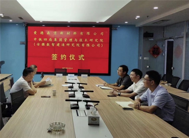 2022年9月5日,愛德森堡集團與中鐵四局集團管理與技術研究院,就愛德森堡集團旗下兩家新材料公司的數(shù)智化園區(qū)建設,達成500萬戰(zhàn)略合作協(xié)議。中鐵四局集團管理與技術研究院院長耿天寶和愛德森堡黃梅新材料有限公司總經(jīng)理吳虎分別代表雙方簽約。