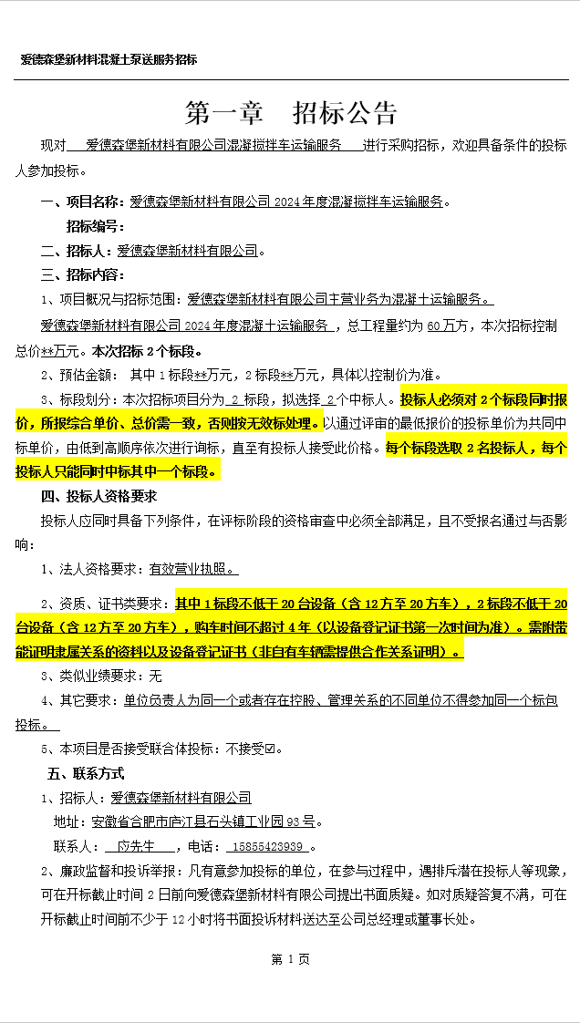 > 愛德森堡新材料混凝土泵送服務(wù)招標(biāo)
